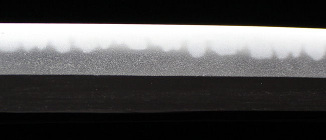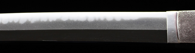 粟田口近江守忠綱は初代が慶長十四年の生まれで寛永年間に京都へ上がり、のちに大阪に出て、寛文頃には隠居するも二代忠綱の手を借りて延宝四年まで作刀する。 二代忠綱は初代の実子で正保元年の生れ。 寛文頃に家業を継ぎ、元禄二年以降は一竿子の号銘を使う。 初期の作風は初代同様に焼き頭のよく揃った足の長い丁子乱れが多く、後に互の目乱れや助廣の影響を受けた濤瀾刃や直刃などを焼いている。また彫りの名手としても広く知られる。 姿、鎬造、庵棟、身幅広めに反りややつき、中切先。 鍛え、小板目肌細かにつみ、地沸よくつき、映り上がる。 刃文、直ぐに焼き出して、その上は足長の丁子乱れ、匂口締まりごころに小沸よくつき、明るく冴え、砂流しかかる。 帽子、直ぐに小丸。 茎、生ぶ、先刃上り栗尻、鑢目化粧に筋違い。目釘穴二。 特別保存刀剣鑑定書には初二代の代別の記載はないのですが、寛文期を過ぎ延宝頃を彷彿させる姿、銘振り、足長丁子の焼き頭が揃う初代作よりも乱れが目立ち、匂口に小沸がよくつき、匂い深く、明るく冴えるところなど、二代の特徴が多く散見され、延宝・天和頃の二代忠綱の作と見てよいでしょう。江戸期中葉の大阪新刀の代表工で、元禄文化と融合した江戸にはない華やかさが忠綱の真骨頂です。 本作は姿、地がね、焼き刃全てに於いて華やかで、まさに忠綱の本領が発揮された優品です。 |